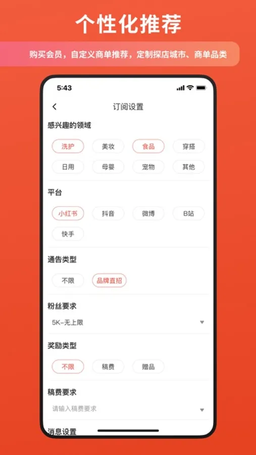 博主可以开通会员订阅功能,客制化自己的订阅偏好,高效获取与品牌合作的商机。