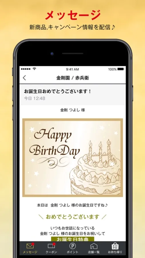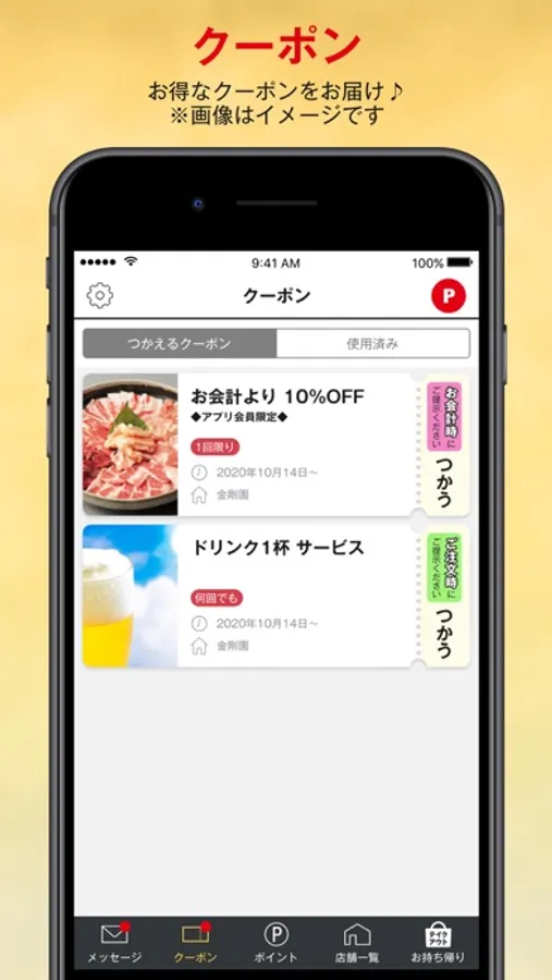 キャンペーンや新商品のご案内など、お店からお得な情報をお届けします。