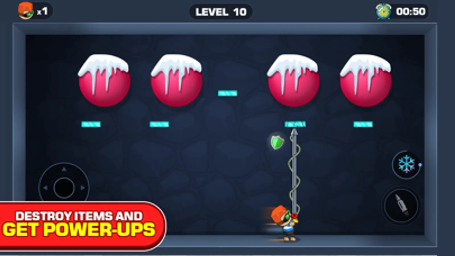 Get into the ball bust pang adventure to pop bubbles and clear the levels, pop bubbles by shooting arrows. Each time the bubble will split in 2 halves in both directions. Keep popping bubbles until they disappear. Use your ultimate arrow shooting skills to become a championship of the pang arcade bubble world. Different power will be acquired on ball bursting games.