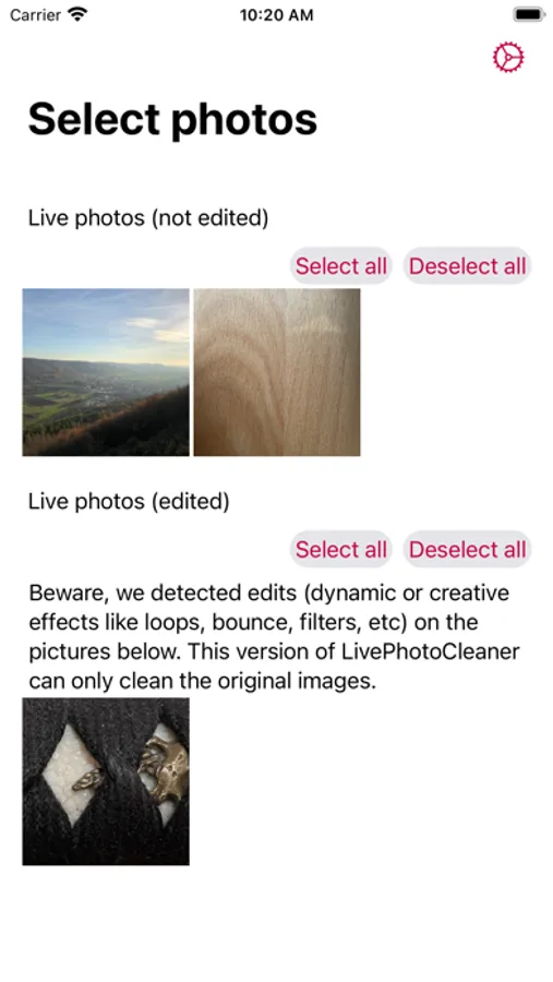 - Live Photos you edited (applied a bounce, loop, or long-exposure effect, applied a color filter, corrected exposure, cropped, etc.) cannot be cleaned up at the moment.