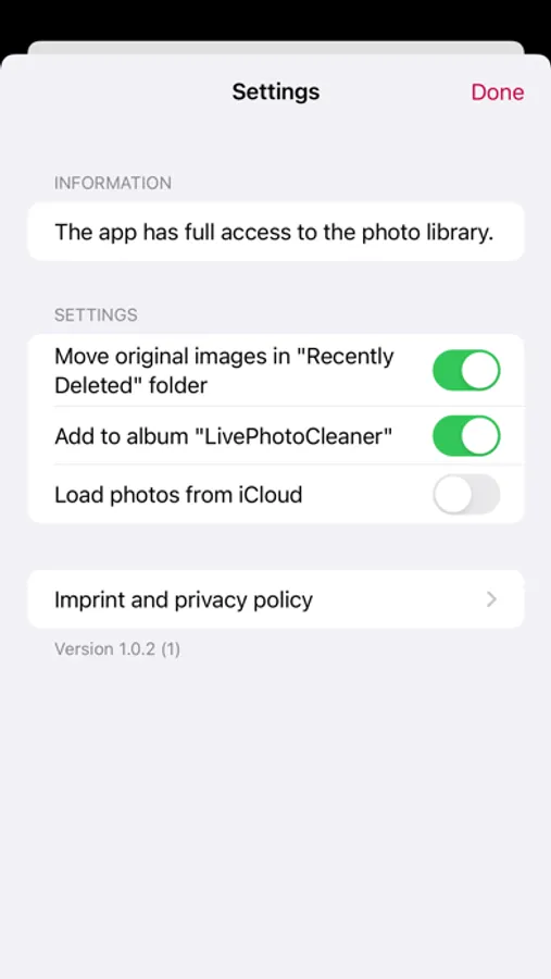 - LivePhotoCleaner duplicates the Live Photo as a still picture, and moves the original to the "Recently Deleted" folder of the iOS Photos App. Thus memory will only be reclaimed after the photo is deleted for good.
