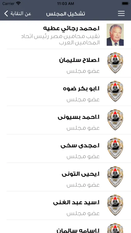 التطبيق الرسمى للنقابة العامة للمحامين المصريين لمتابعة اخر المستجدات والاخبار وايضا يمكن للمحامى ان يقوم بالتسجيل عليه عن طريق رقم القيد ومتابعه حالة القيد والسداد و الرعاية الصحية وايضا يحتوى على نبذه عن النقابة ومجلسها والنقابات الفرعية