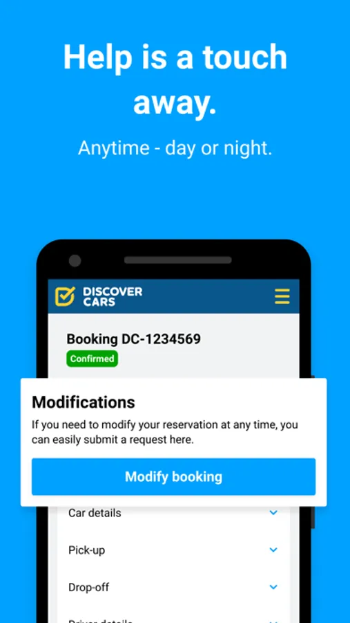 In the My Booking section of the app, you can manage everything related to your booking — changing the dates, adding another driver, or upgrading your car. You can also see all of the details of your booking and our flexible cancellation policy anytime and anywhere you need.