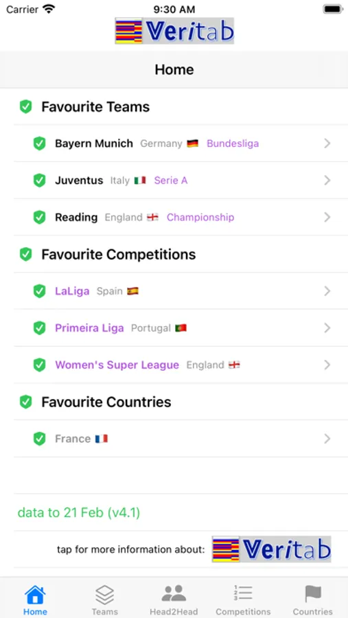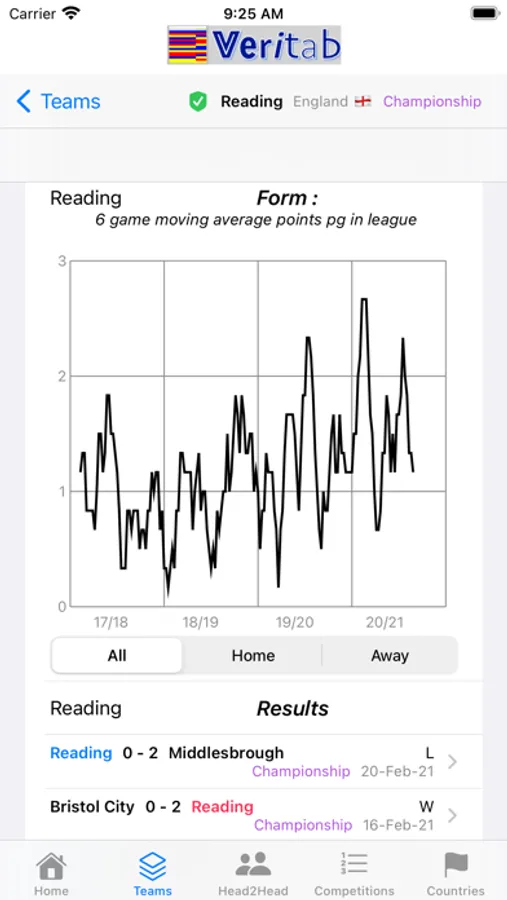 The historical results in VeriTab are updated weekly and VeriTab has no ads or in-app purchases. VeriTab includes results from the following competitions from 17/18 :