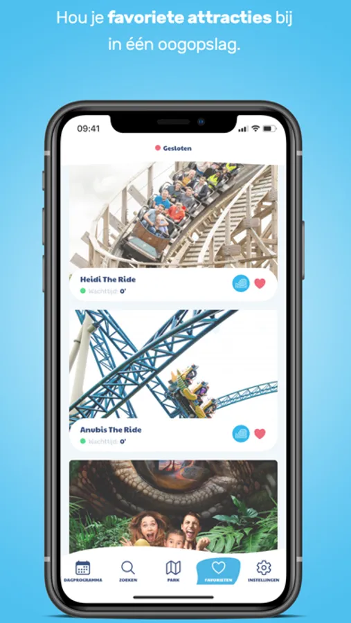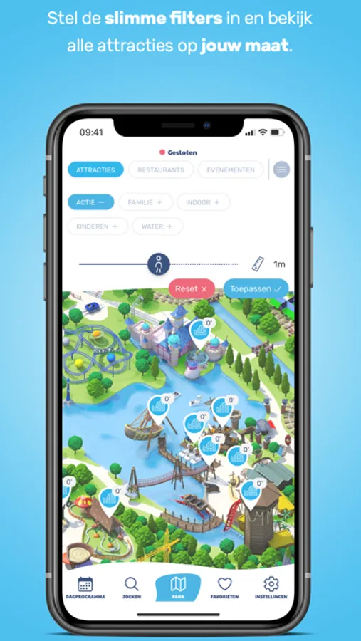 Met de Plopsaland-app vind je alle informatie over het park in één handomdraai! De app zit boordevol handige tools om je bezoek nog comfortabeler te maken. Zo weet je altijd wat de wachttijd is bij je favoriete attractie en krijg je via push-berichten de laatste info over shows, openingstijden en promoties. Bovendien kan je attracties filteren op basis van de grootte van je kind, je favoriete figuur of de soort attractie.