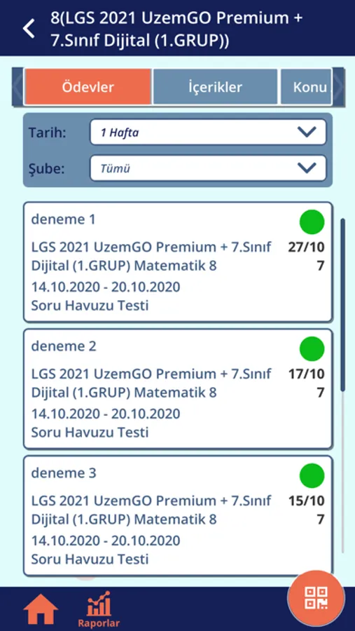 Şube ve ders bazlı öğrencilerin Ödev, İçerik, Konu anlatımı durumlarını raporlayabilirsiniz.