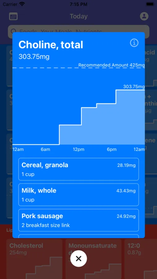 See your day-by-day nutrient intake with a detailed breakdown of the macro and micro nutrients that your diet contains