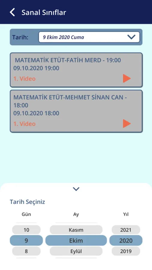 Sistemden size atanan sanal sınıfların listesini görüp derse katılabilirsiniz.