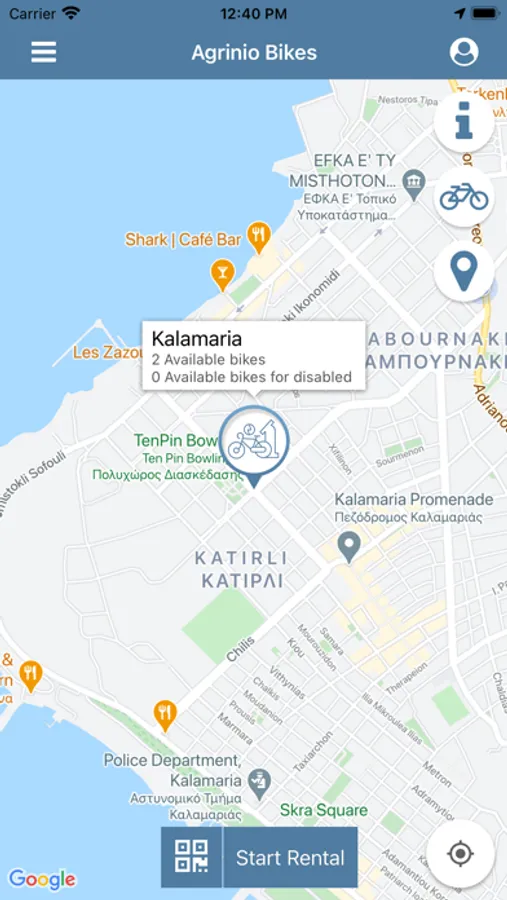 Μέσα από την εφαρμογή του Agrinio Bikes μπορείτε να νοικιάσετε ένα ηλεκτρικό ποδήλατο εύκολα και γρήγορα απο τους διαθέσιμους σταθμούς. Μπορείτε να δείτε όλα τα σημεία των σταθμών μίσθωσης ποδηλάτων και βρείτε τους σταθμούς που είναι πιο κοντά σε εσάς.