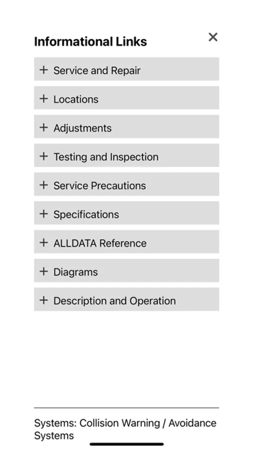 • Get a list of ADAS systems, components, component locations and required calibrations