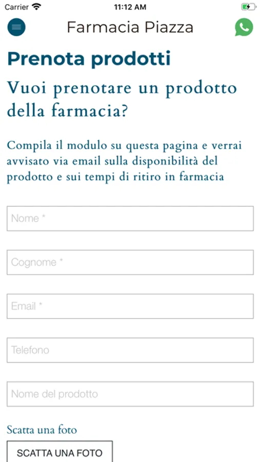 - Richiesta e prenotazione prodotti, anche mediante l'invio di immagini