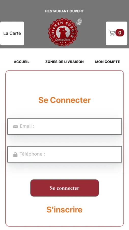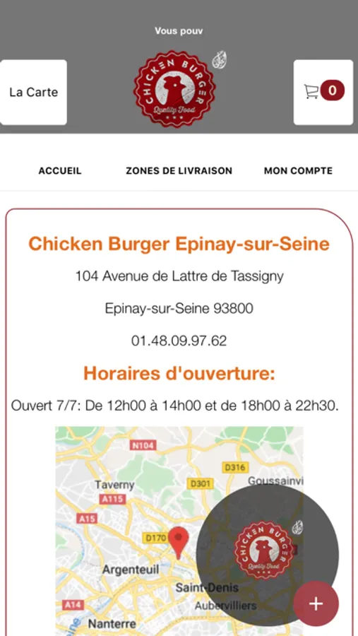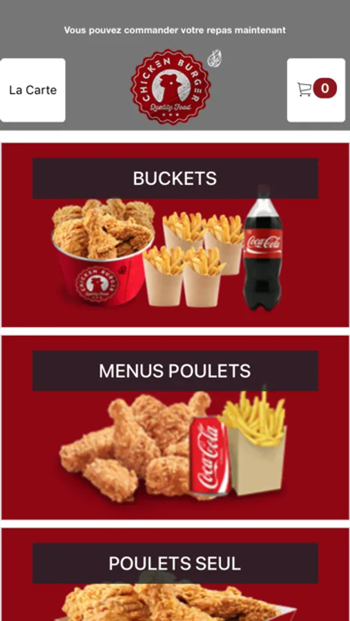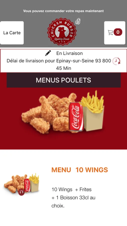 L'application Chicken Burger vous permet de commander en ligne ou par téléphone via votre application. Vous pouvez consulter notre carte et choisir vos produits.