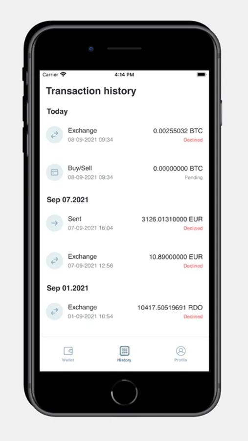 You get access to all your transactions history. Also crypto wallet app shows daily charts of all traded currencies. So the crypto trading process is organized as clearly as possible.
