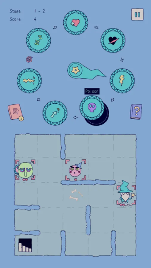 Spells are placed on the Magic Clock. After each move the clock hand turns and you must make use of the spell it points at. The spells remain on the clock indefinitely. If you wish to get rid of a spell, you can drag it from the clock directly to a target. It will be executed once more and disappear.