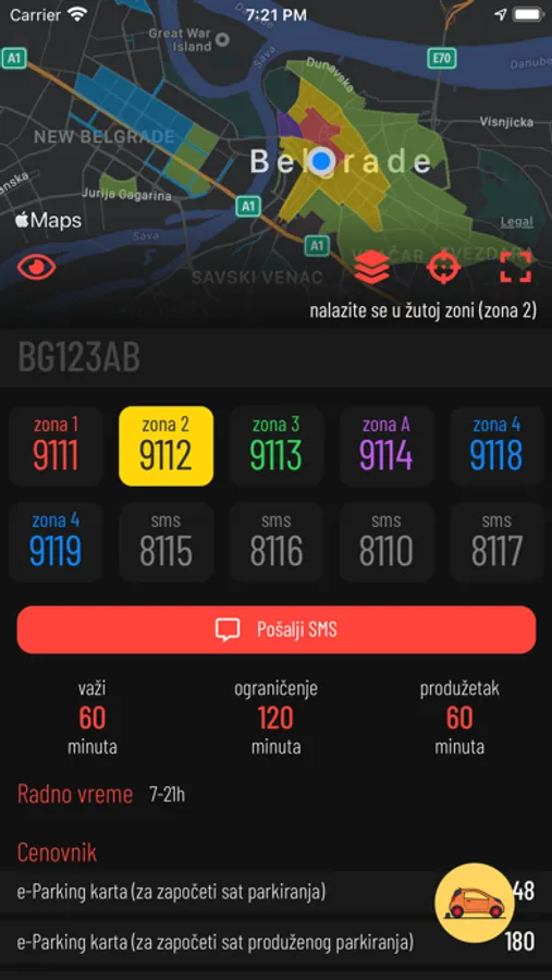 Aplikacija koristi, ako joj se to dozvoli, GPS lociranje kako bi se odredila zona u kojoj se nalazite. Prikazuje se detaljna mapa svih zona u Beogradu. Moguće je snimiti više od jedne registarske oznake uz prateći opis.