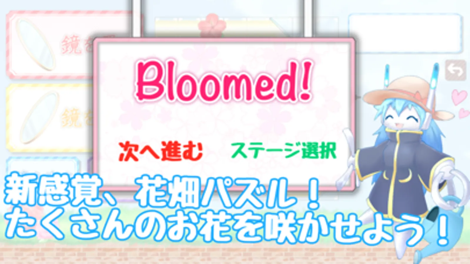 パズルを解いて開花させればさせるほど、画面下部にある花壇の花が増えて華やかになるよ!