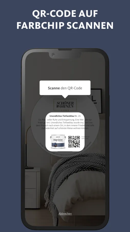 - Neues Feature Farbchip-Scanner: Scanne den QR-Code auf dem Farbtonmuster und färbe Deine Wand direkt in dieser Farbe ein.