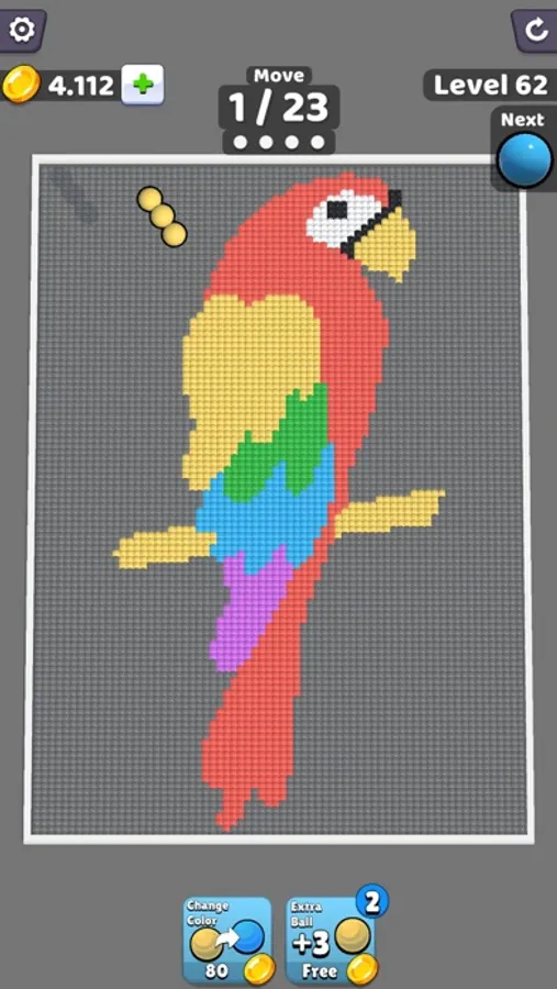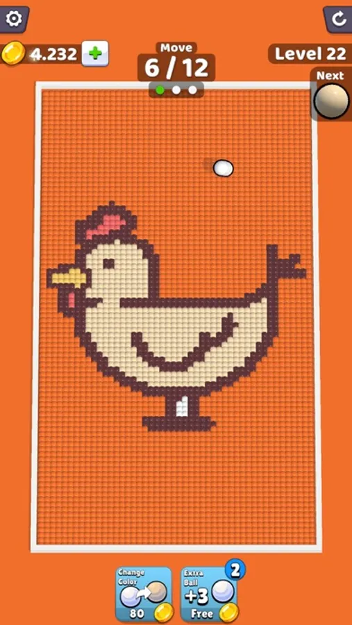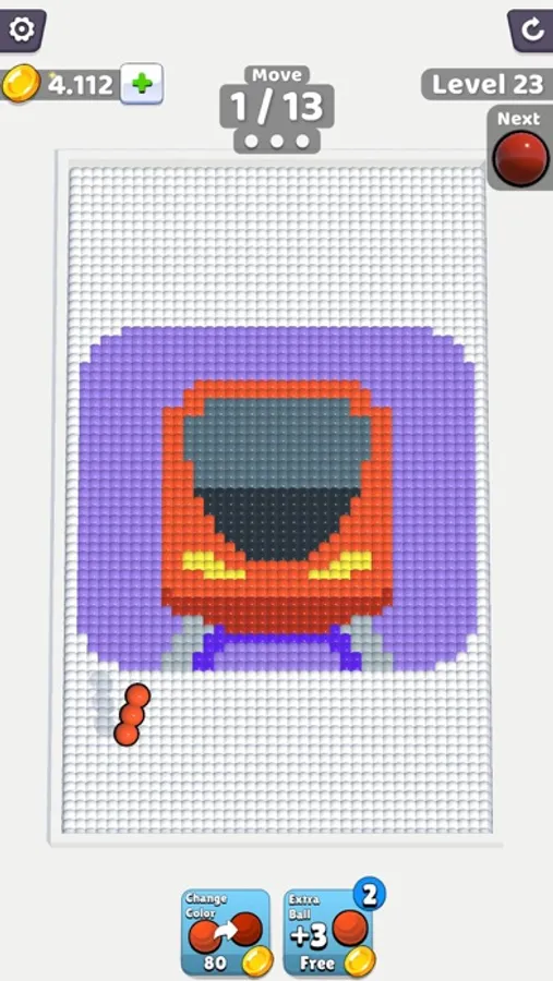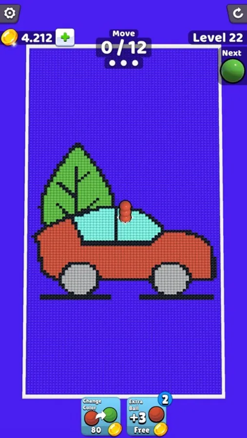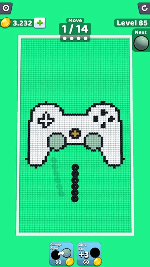 Arrange the ground colors by throwing colored balls at your target points. Drag and aim the color ball, release to start coloring. You should use the corners actively as if you are playing billiards. You need to color everywhere with the same color to complete.