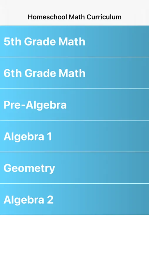 YourTeacher provides a complete homeschool math curriculum covering 5th Grade Math, 6th Grade Math, Pre-Algebra, Algebra 1, Geometry, and Algebra 2.