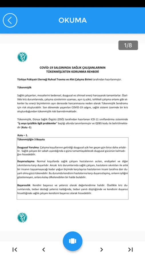 Bu uygulama pandemi sürecinde siz sağlık çalışanlarının stres ve kaygı durumlarıyla baş etmesine yardımcı olmak amacıyla geliştirilmiştir. Zorlu günlerden geçtiğimiz şu günlerde sizlere çok önemli ve hatta hayati bir sorumluluk üstlendiğinizin farkındayız. Bu programla sizlerin stres ve kaygılarınızla baş etmenize destek olmayı umut ediyoruz. Bu uygulamada kullanılan bilgiler ve egzersizler Bilişsel Davranışçı Terapiye (BDT) dayanmaktadır. Bu uygulama bir TÜBİTAK projesi kapsamında Prof. Dr. Mehmet Z. Sungur’un danışmanlığında ruh sağlığı uzmanları tarafından geliştirilmiştir. Uygulama kapsamında kişinin takip edeceği stres ve kaygıyla başa çıkma programı toplam 6 modülden oluşmaktadır.