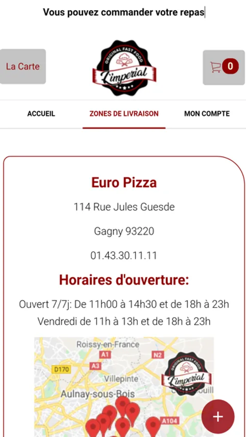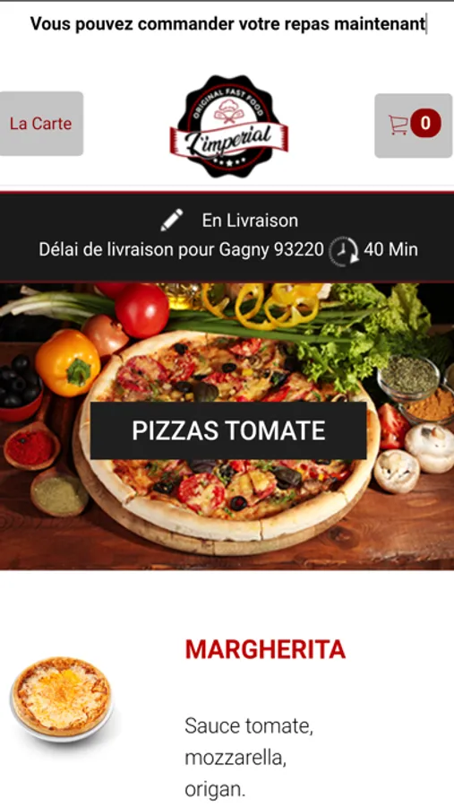L'application L imperial vous permet de commander en ligne ou par téléphone via votre application. Vous pouvez consulter notre carte et choisir vos produits.