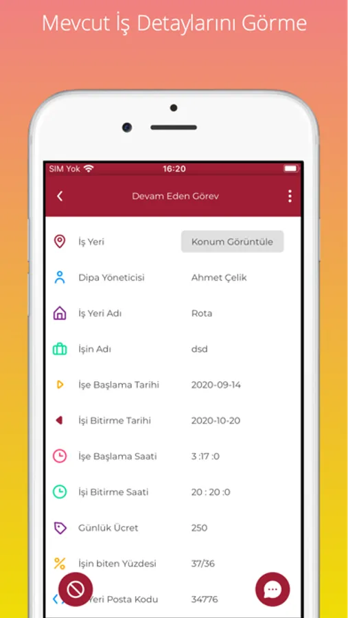 Her işin başlangıç tarihi ve bitiş tarihi vardır.Kullanıcı belirtilen tarihte işe başladığı gibi kullanıcının konumu Dipa uygulaması ile alınmaya başlar.