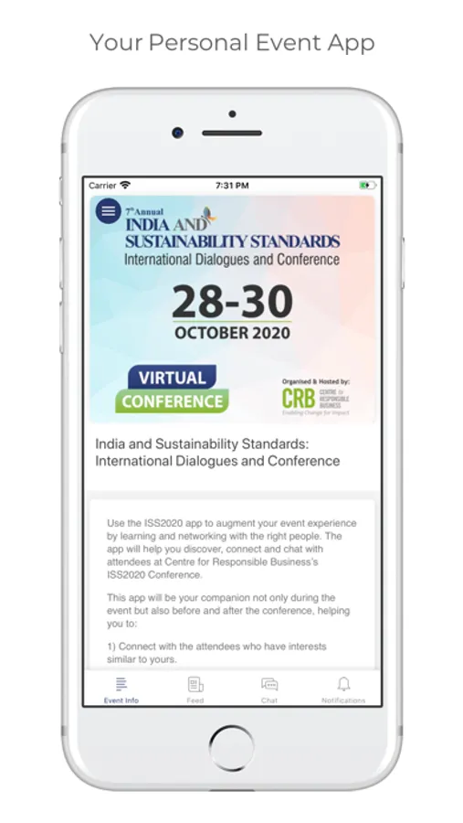 Use the ISS2020 app to augment your event experience by learning and networking with the right people. The app will help you discover, connect, and chat with attendees at the Centre for Responsible Business’s ISS2020 Conference.