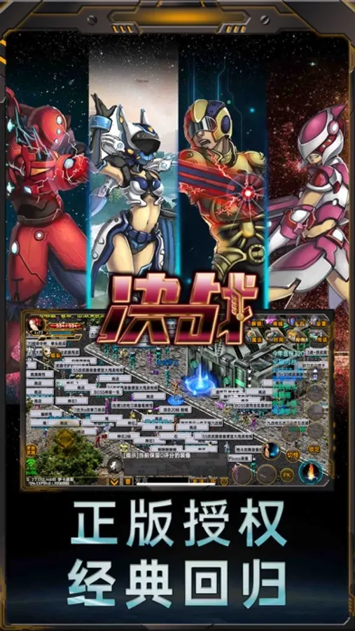 决战手游正版授权,国产永久开发。复刻端游,千万人等待的决战手游,这里将是你们的世界,经典再现,拿起你手中的反物质激光剑III,龙神之怒-s、龙神炮x6、龙之翼-s,去开拓新的时空世界,去征服蝎子王、巨型污染鱼、武神、虎王、黑暗死神等boss。