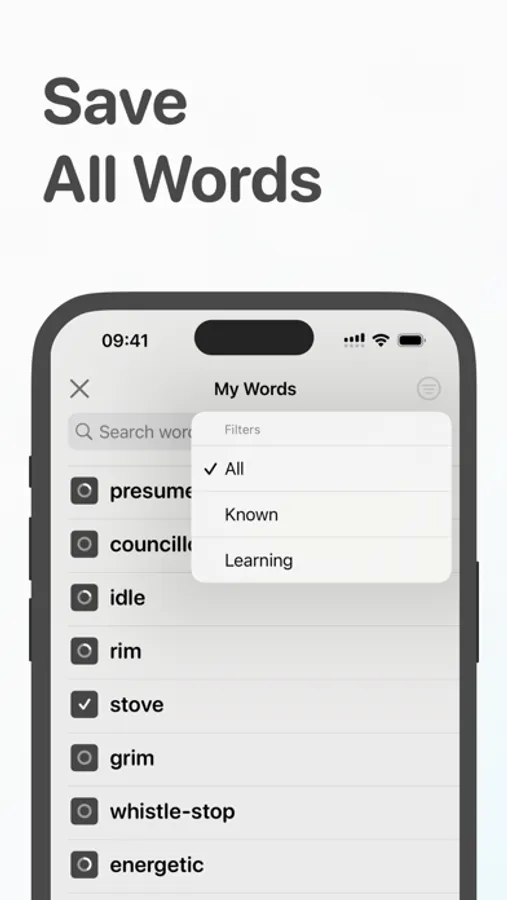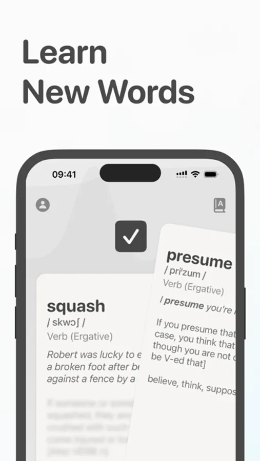 Wozi helps expand your vocabulary without you even realizing it, just like magic! It allows any English learner to discover new words in a simple, intuitive way and learn and remember them through flashcards.