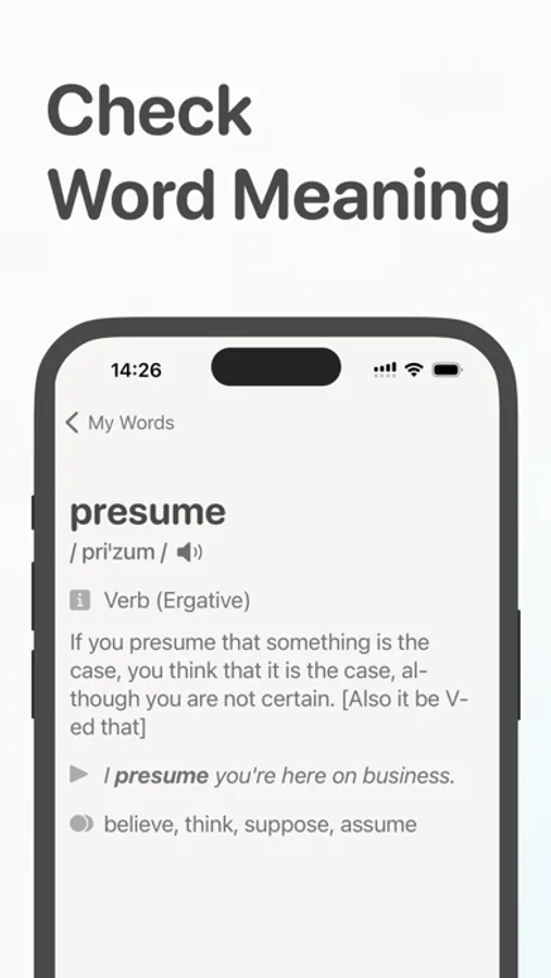 Focus on the areas you need to improve the most, whether it's for an exam, book, film, or any aspect of life. Wozi enables you to become more familiar with the area more quickly by providing accurate real-life examples and precise English word meanings. This way, you not only know the most commonly used words but can also use them better in the real world.