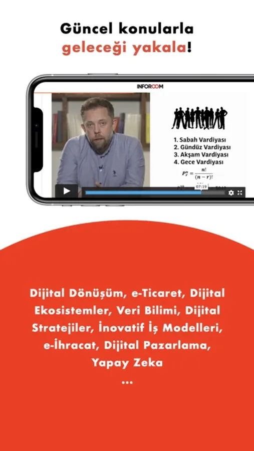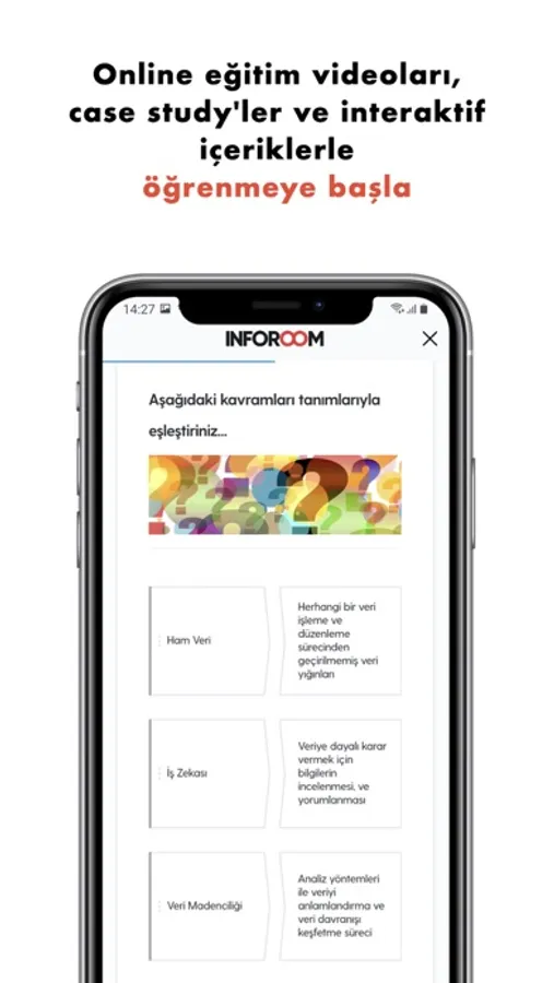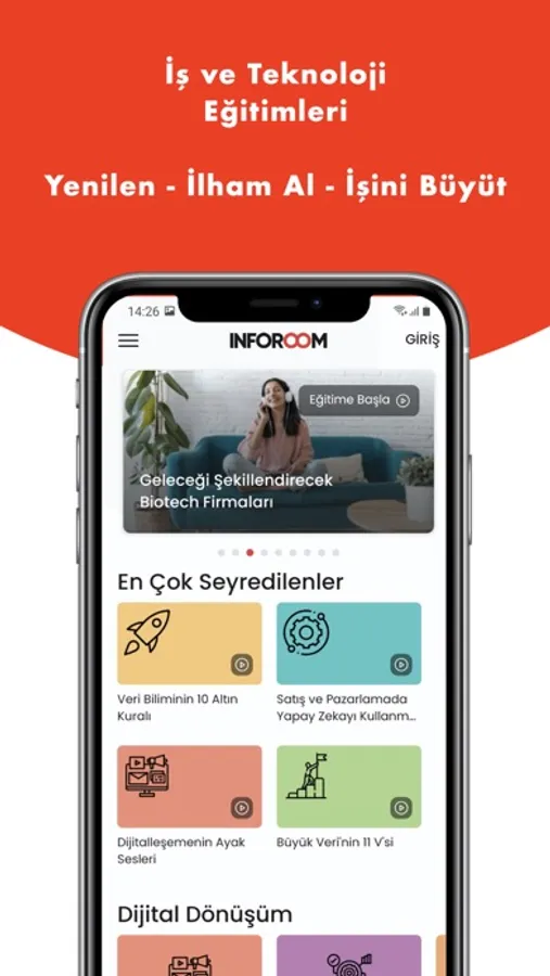 Inforoom’da; dijital dönüşüm, inovatif dijital iş modelleri, dijital platform ve ekosistemler, veri bilimi, yapay zeka, blockchain, finansal teknolojiler, e-ticaret, e-ihracat ve daha birçok konuda güncel ve sürekli yenilenen interaktif eğitim ve içerikler bulacaksın.