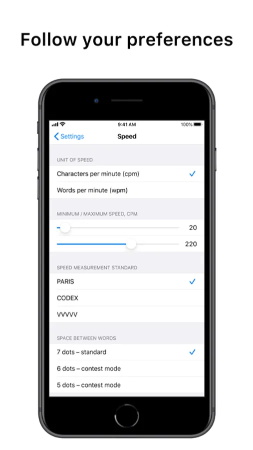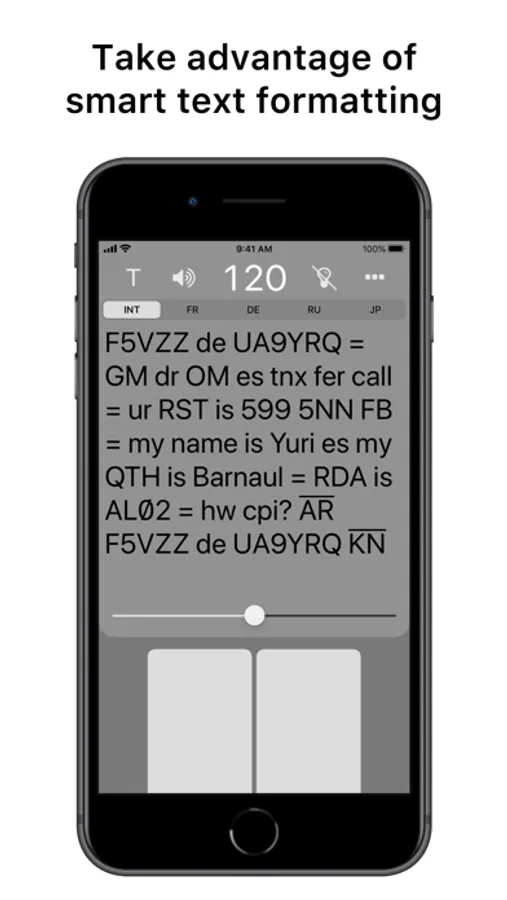 A special attention in the app is paid to the sound signal quality, its timbre, the optimal level of clicks and other characteristics, that make the sound of Morse code authentic and recognizable by any radio operator and comfortable to listen to.