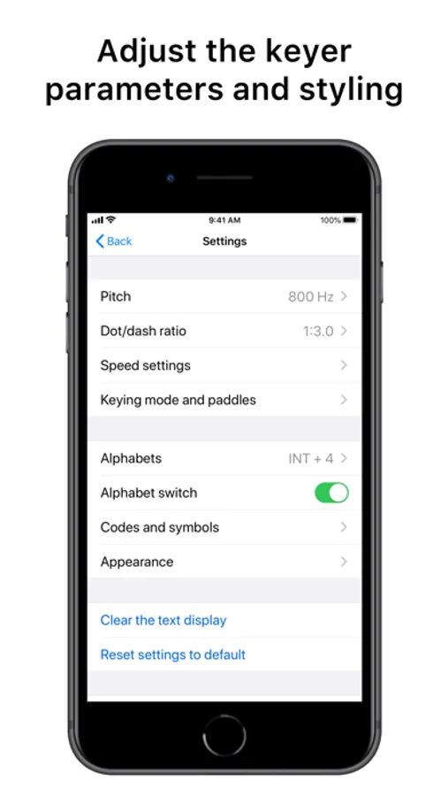 MorseKeyer is ready to use out of the box. However, it has a lot of settings allowing you to fine tune it, customize and make more convenient in different use cases.