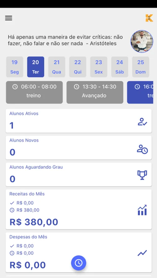 O Kanri App é parte integral do sistema de gestão para professores de jiu-jitsu Kanri Web, permite controlar de maneira fácil a presença do aluno, adicionando de forma fácil sua frequência.