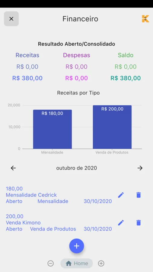 Possui um completo financeiro com contas a pagar e receber, controle de mensalidades, emissão de boletos, e um marketplace onde o professor poderá anunciar seus produtos diretamente para seus alunos.