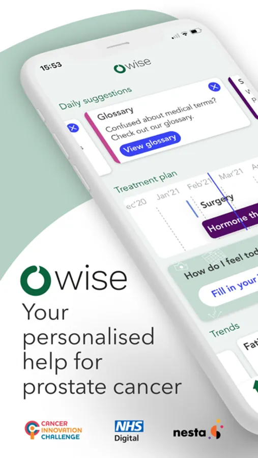 Following the success of OWise breast cancer, which has been used by thousands of breast cancer patients, OWise prostate cancer has been developed this year to give personalised support to those with prostate cancer.