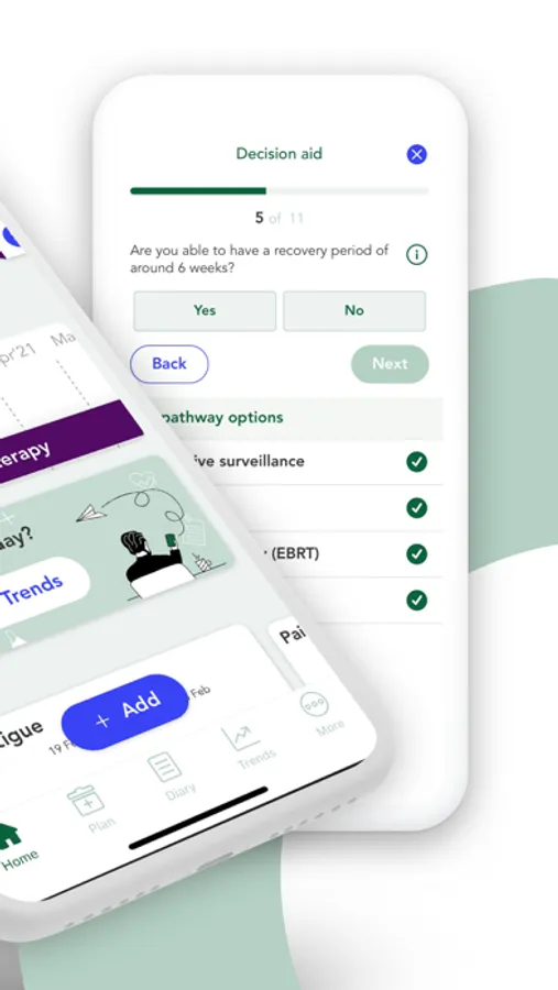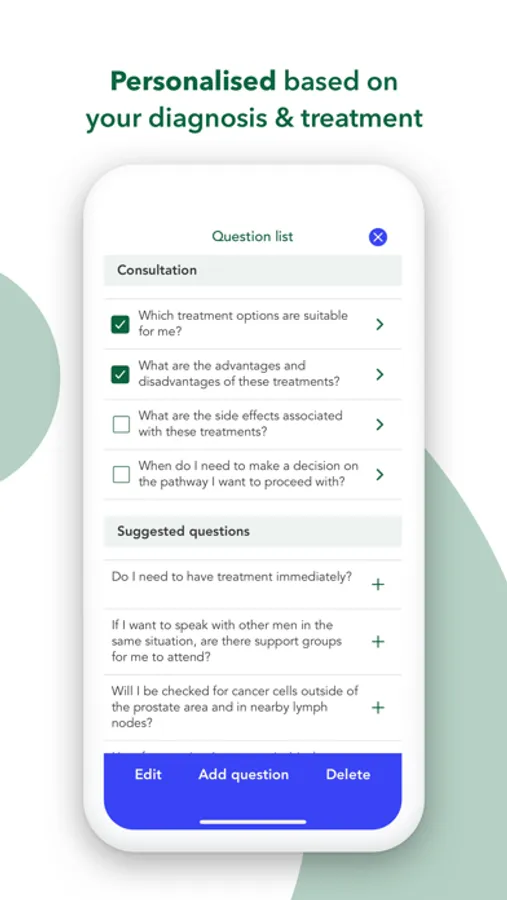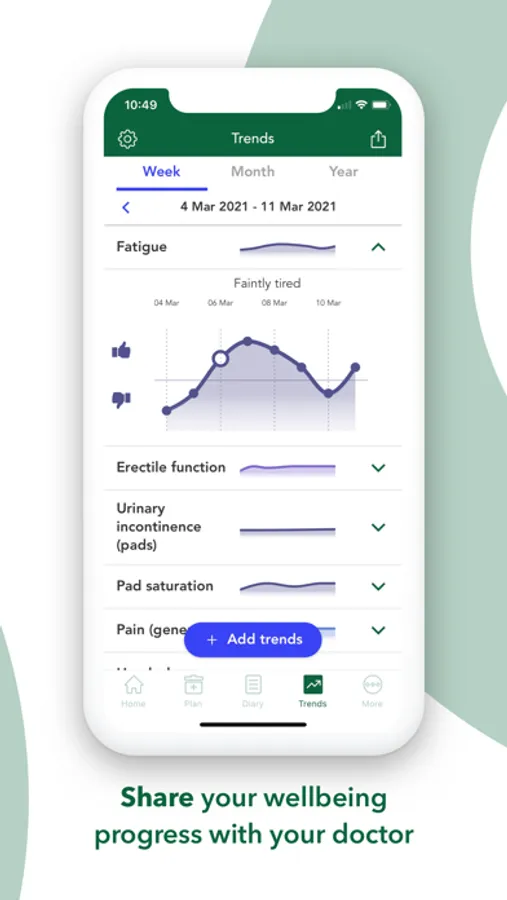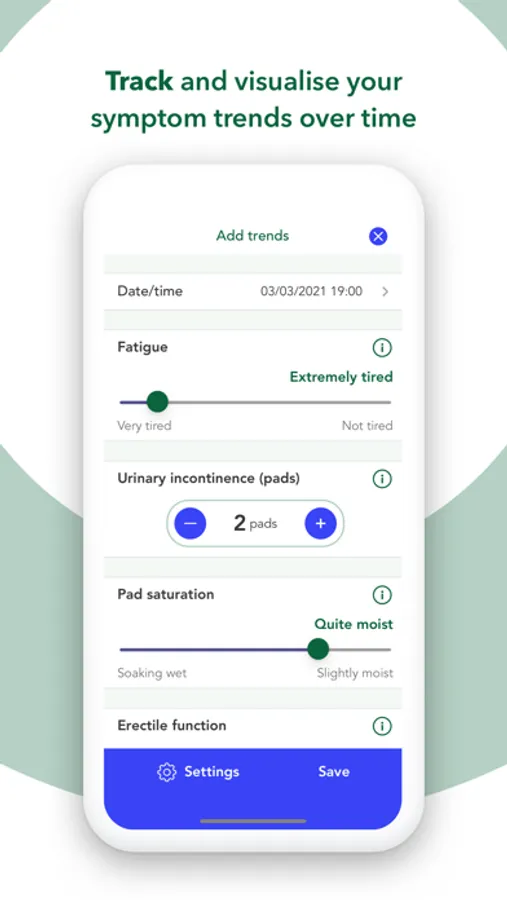 ● Track your prostate cancer symptoms and side-effects to understand your wellbeing progress.