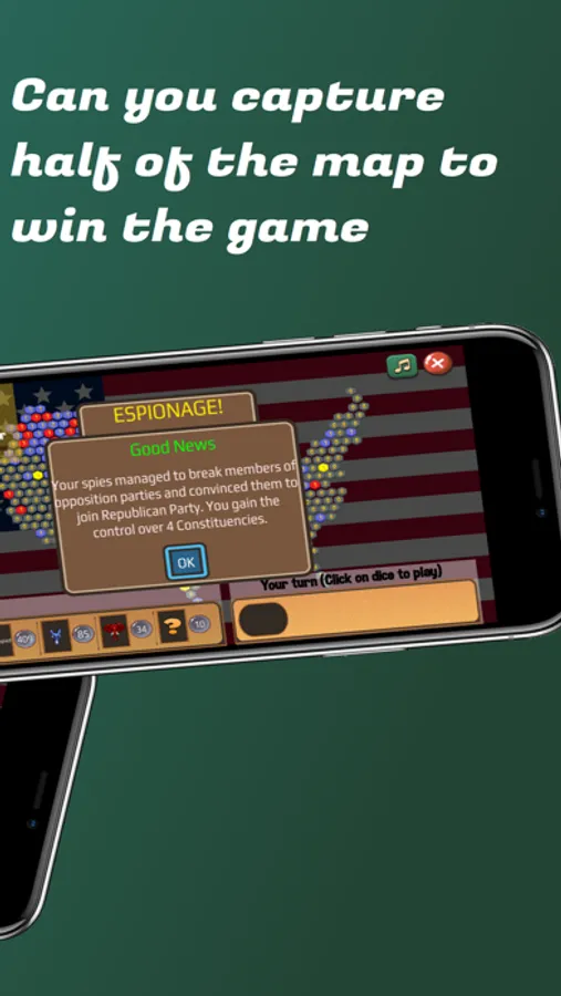 There are two main parties 'Republican party' and 'Democratic party' and we have added 'Other party' to make the game more interesting. The goal of user is to gain control over more than half constituencies. Any party who gains control over half constituencies first will win the election.