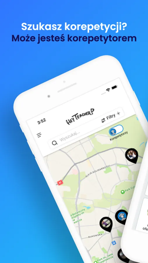 - Mapka, na której użytkownikom będzie wyświetlała się lokalizacja dostępnych korepetytorów, dzięki czemu uczniowie poszukujący korepetycji stacjonarnych będą mogli sprawdzić, gdzie znajduje się konkretny korepetytor.