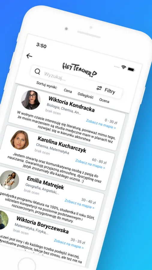 HeyTeacher! to aplikacja dla korepetytorów i osób udzielających korepetycji i równocześnie przyjazna przestrzeni dla wszystkich, którym zależy na rozwijaniu się, poszerzaniu swojej wiedzy oraz pomocy innym.