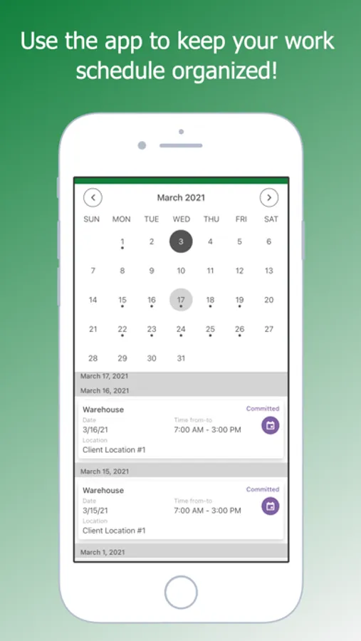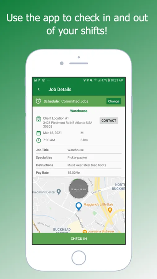 When you accept a job, all the instructions will be sent to your phone. You will check-in and check-out at work using our app and can get paid the same day!