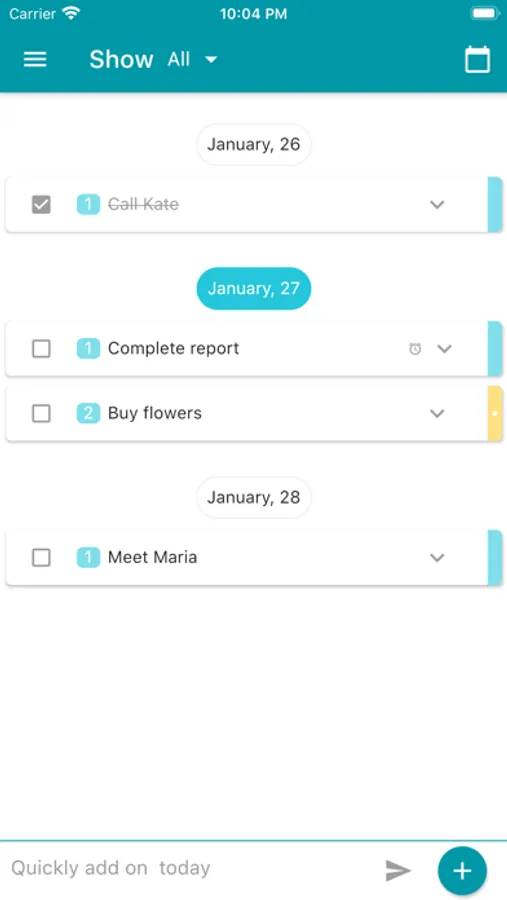 - by long pressing on the entry, move the task to the next / previous day.