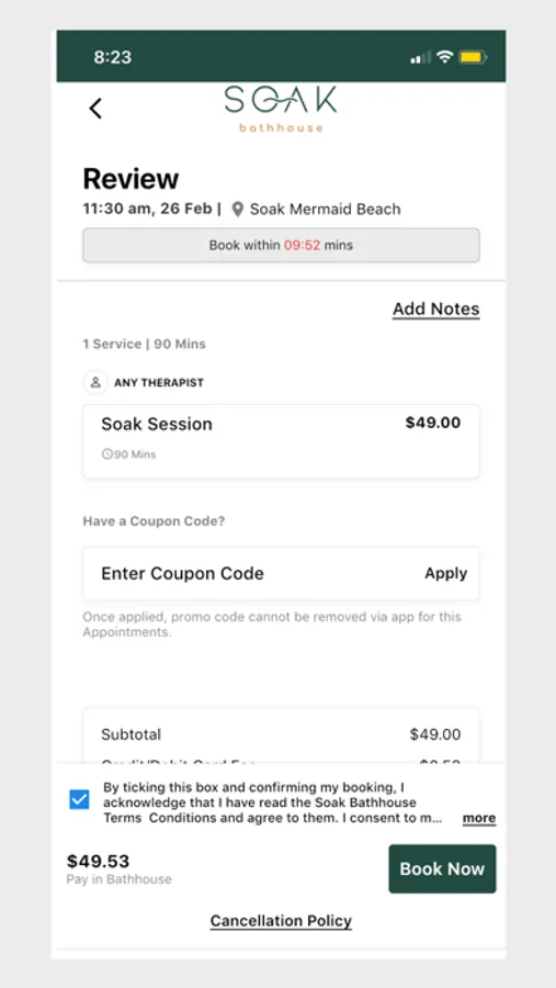 Make wellness even easier with our intuitive Soak Bathhouse app. From booking your experience, to digital check-in, secure purchasing, and providing easy feedback, our powerful app will help streamline and enhance your bathhouse visit. Members can also manage their membership, redeem credits, and keep track of their bathhouse appointment history.