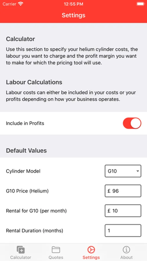 You can save your preferred helium cylinder size from within the settings and then the calculator will calculate the cost of the balloon incorporating the amount of helium used, the values used are for estimation purposes only.