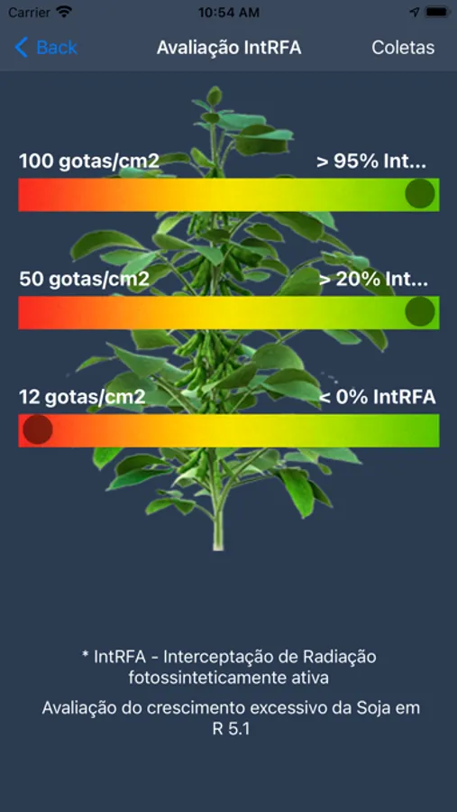 Este aplicativo foi desenvolvido utilizando técnicas de visão computacional para identificar em cartões sensíveis a água (Hidrossensível), a quantidade de gotas, o tamanho de cada gota, o percentual de cobertura e o risco de uma possível deriva na aplicação. O processamento é instantâneo e usa apenas a câmera do seu iPhone! Após a coleta, pode-se informar algumas anotações e automaticamente o Arquitec salva a localização da coleta junto com as informações ali processadas!