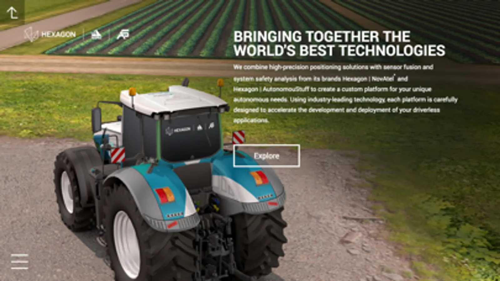 Interactive 3D experience introducing you to the solutions provided by Hexagon's Autonomy & Positioning division and its brand portfolio which includes NovAtel and AutonomouStuff. Choose from several interactive experiences showing our technology in action, or check out the 3D interactive product catalogue, which allows you to see how a product will fit in any environment.