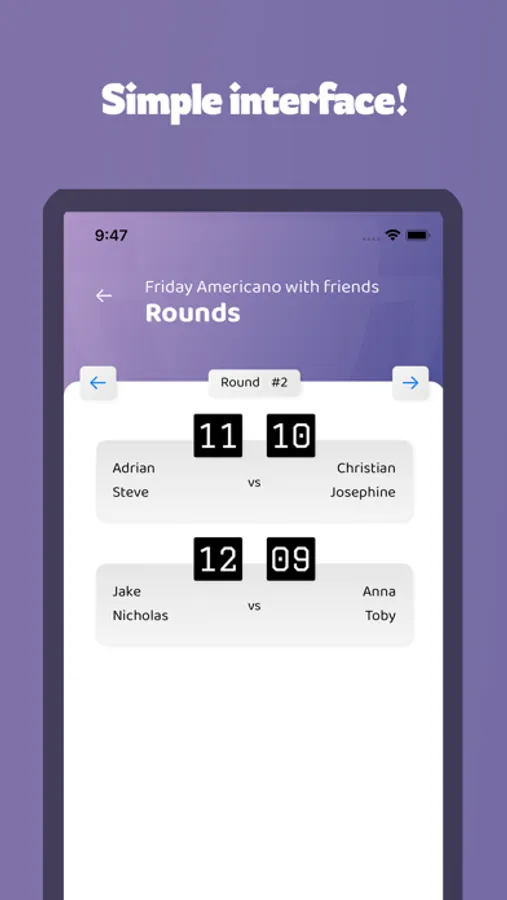 You just have to enter some basic information like the player names, how many courts you are playing on and how many points you are playing from. The app fixes the rest.