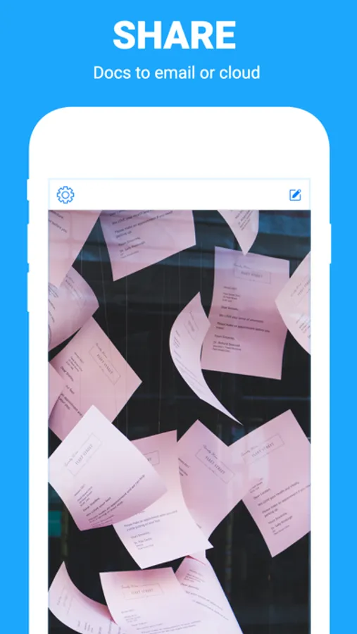 Easily and quickly Share Documents in PDF or JPG via E-mail or Social Media.