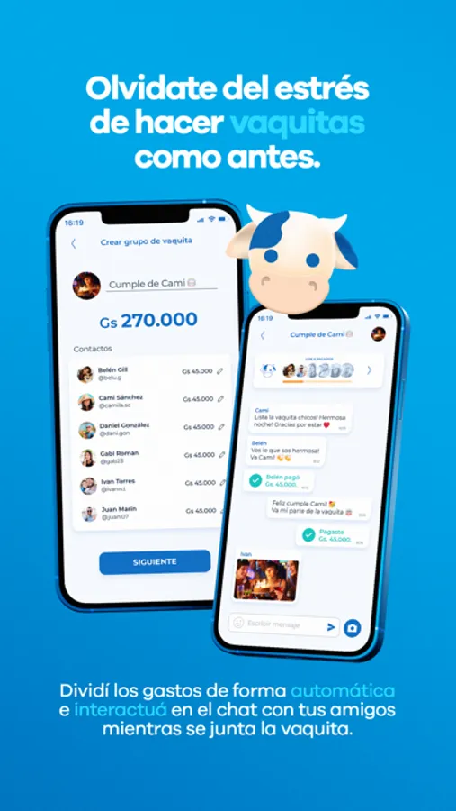 • ¡Olvidate de hacer vaquita como antes! Creá y sumate a vaquitas con tus contactos, y chateá en el grupo mientras ves cómo la vaquita se va completando