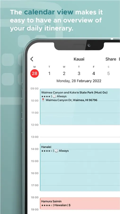 The calendar view makes it easy to have an overview of your daily activities. The map view allows you to easily navigate to each location. We allocate activities during the best time of the day and the most convenient travel route.